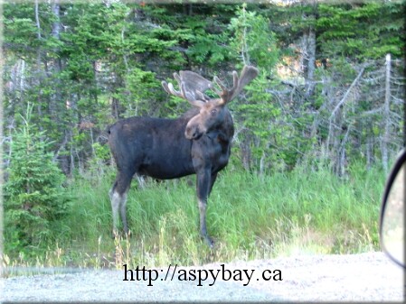 Moose on top of North Mountain. We drove 30 minutes to Pleasant Bay each day. We averaged seeing 5 or 6 moose a day. (We are traveling over the mountain early in the morning).